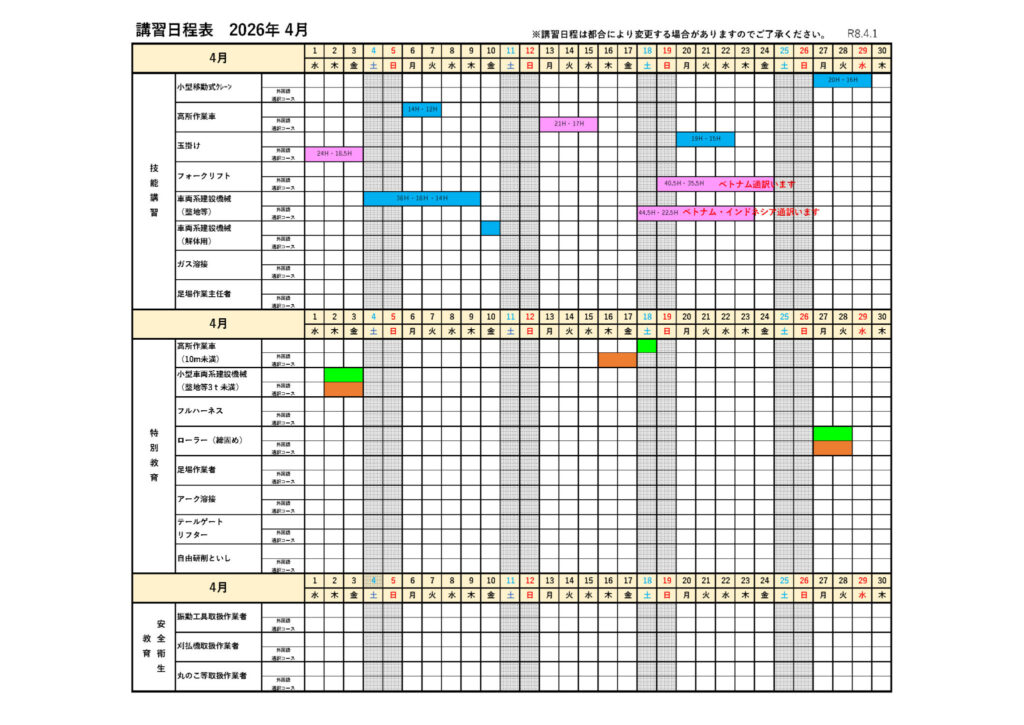| 車両系建設機械(整地) | ベトナム語 ※英語、インドネシア語 |