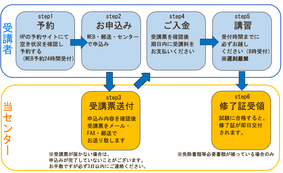 ※予約されずに受講申込書が届いた場合、ご希望の講習日に受講できない場合がありますのでご了承ください。